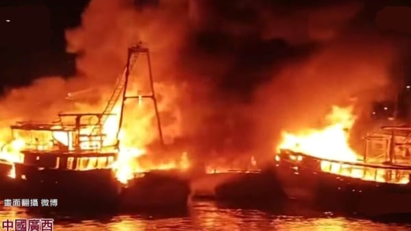 广西北海一码头渔船起火 火势蔓延到8艘船