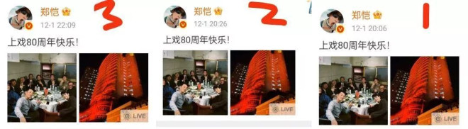郑恺晒与陈赫等人合影,前后进行3次编辑