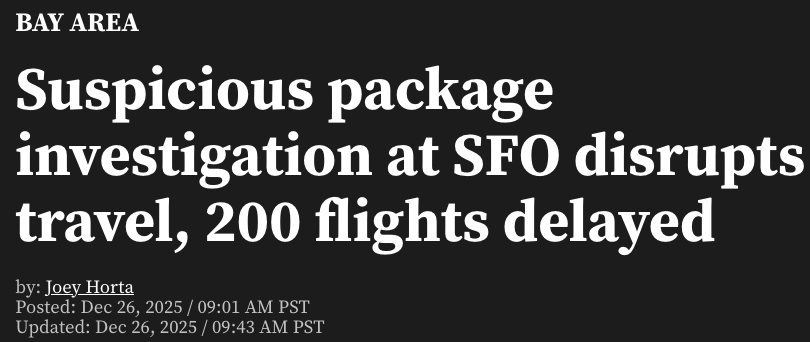 旧金山机场调查可疑包裹,近200航班延误