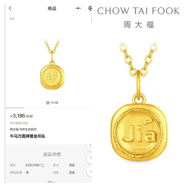 周大福新品“牛马”方圆足金吊坠引热议