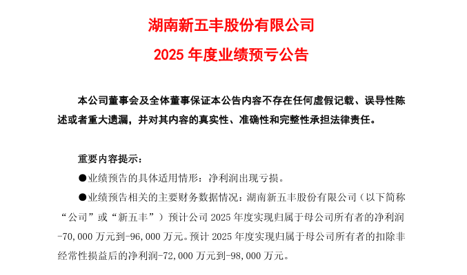 猪企新五丰2025年多销售100万头猪 却亏损7亿