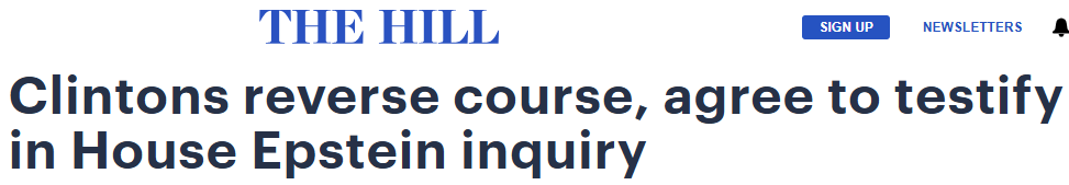 克林顿夫妇同意就爱泼斯坦案调查赴美众议院作证