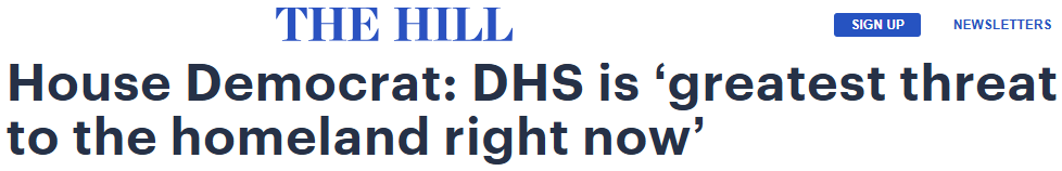 民主党议员:国土安全部是对国土最大的威胁