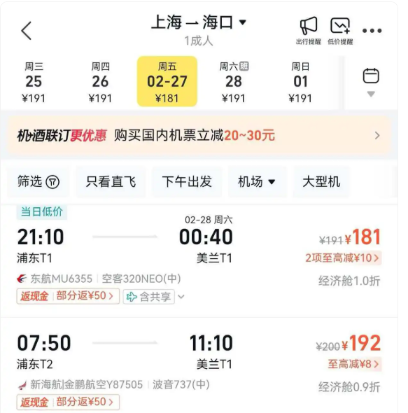 中国新年假期过后 大陆机票大跳水