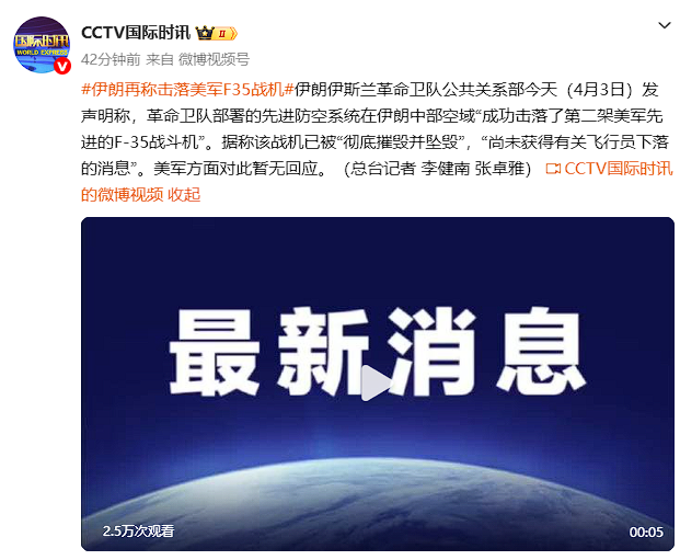 F-15E战机在伊朗上空被击落 美军搜救飞行员