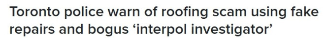 多伦多屋顶维修诈骗升级:冒充国际刑警上门