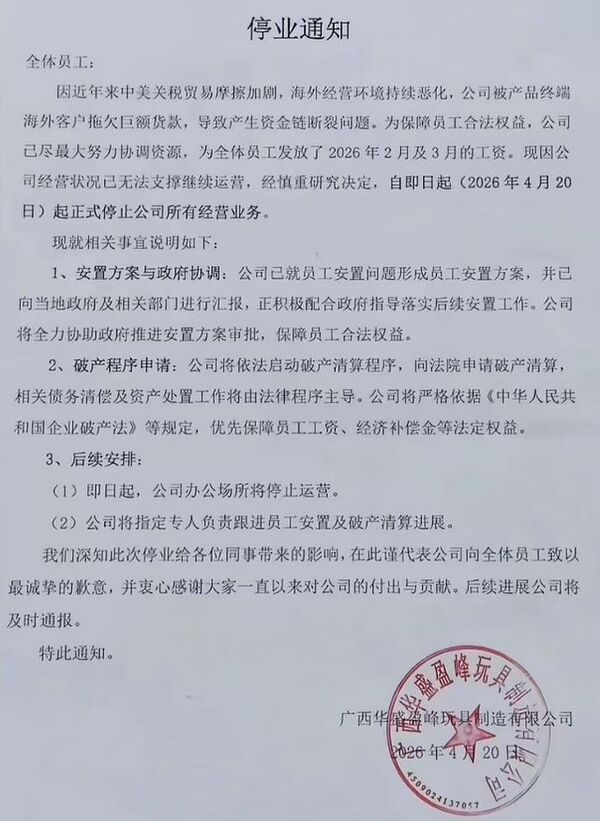 伊朗战争令中国经济承压,广西数千名工人讨薪抗议