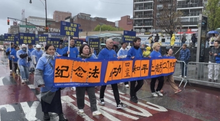 华人观看纽约法轮功纪念“四二五”游行:精神洗礼