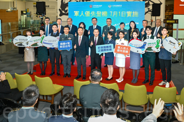 为表达对中华民国国军长期守护国家安全的感谢,台湾的华航等6家国籍航空公司国际线航班将同步推出“军人优先登机服务”。交通部长陈世凯与国防部长顾立雄6日联袂出席记者会,除向国军弟兄与航空公司表达谢意,也宣布此一服务将于7月起实施。