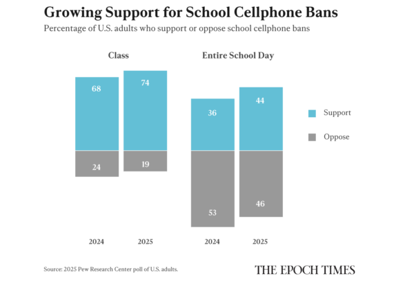 此外,美国人总体上似乎越来越倾向于认为,孩子不应该使用手机,不仅是在课堂上,而且是在整个上学期间都不应该使用手机。皮尤研究中心的一项民意调查显示,2024年,36%的美国人支持全天手机禁令,而到了今年早些时候,支持全天禁令的比例上升到44%。