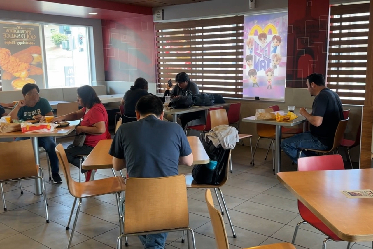 麦当劳近期重推“超值套餐”,比单点餐品优惠15%。工作日白天,蒙市的麦当劳内几乎坐满顾客。(世说新闻团队/摄影)