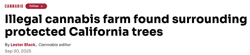 尽管加州选民早在2016年就投票通过了娱乐用大麻合法化,但非法种植活动仍在州内数百万英亩的公共土地上持续存在。