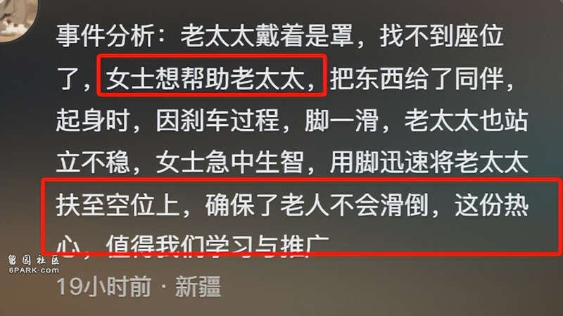 老太太找不到座,他想帮助对方,结果老太太没站稳,才急中生智用脚将其扶到空位上,礼貌、聪明而优雅,值得点赞。