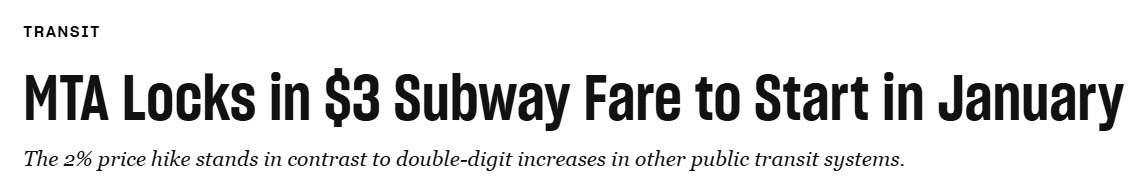 MTA 选择继续遵循所谓“每两年一次,小幅且可预测”的票价调整模式。