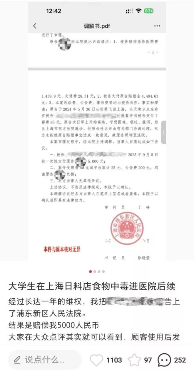 近日,法学生小陈(化名)分享了自己在上海一日料店就餐后食物中毒,并用时一年成功维权,获赔5000元的经历。