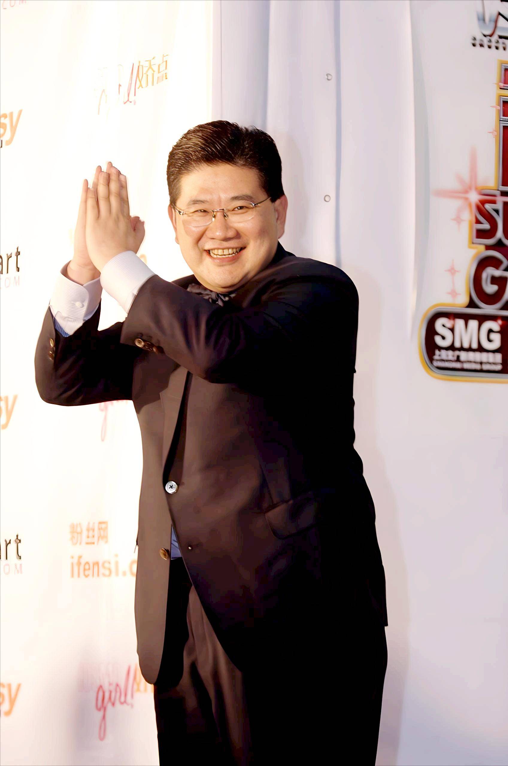 陈宝国身着浅色格子西装,里面配白色衬衣、黄色领带,身材笔挺,看上去与实际年龄相符。
