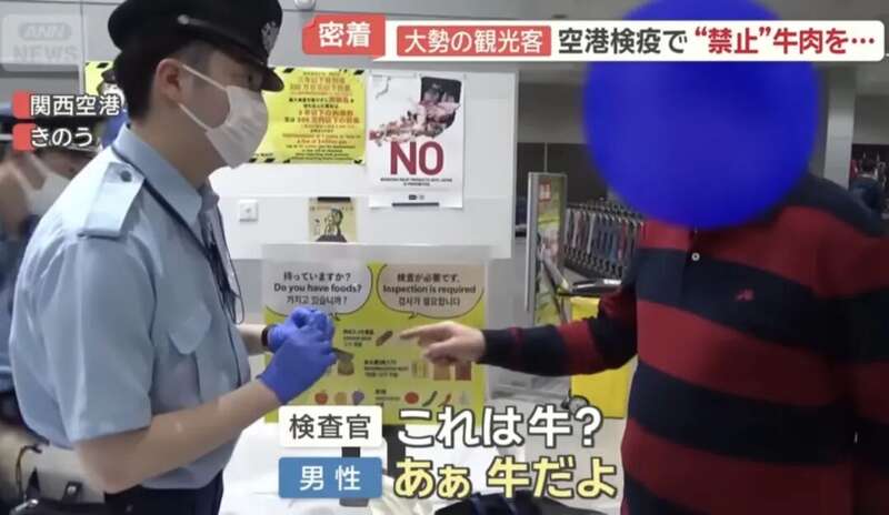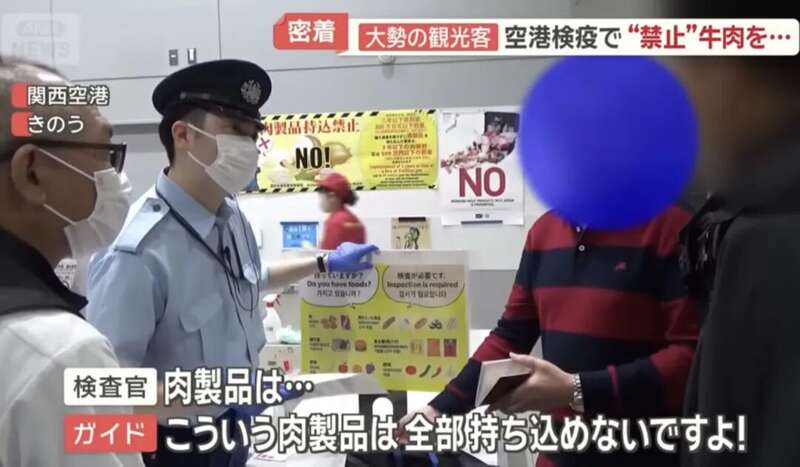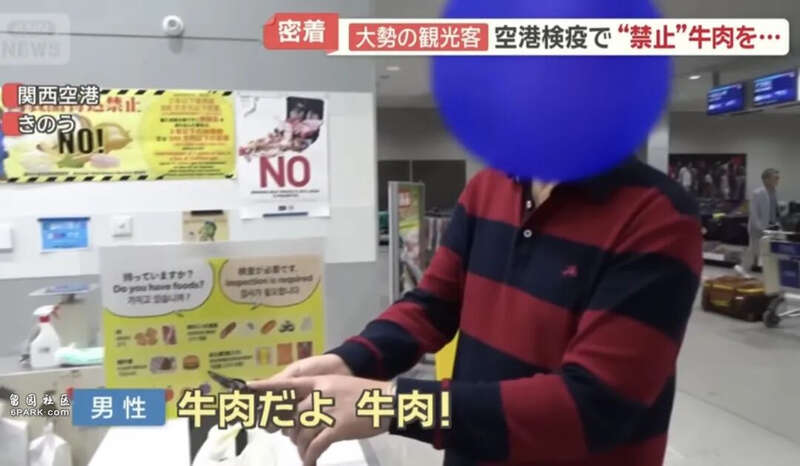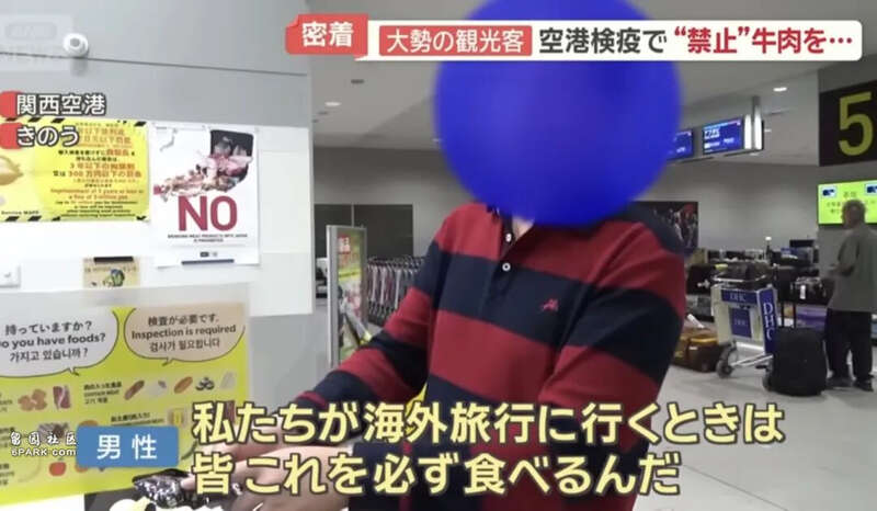 虽然日本明令禁止旅客携带肉类入境,但这名男子却不以为意,还大声说道:“我们出国旅行的时候大家都会带这个吃的!”