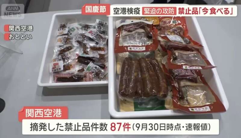 不过伴随着庞大的出境人潮,一些令人哭笑不得的场景也不断上演:禁止携带的牛肉、香肠、水果,纷纷在机场检疫口被查出。