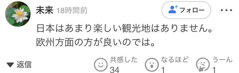“日本不是什么有趣的观光国家。不如考虑下去欧洲。”
