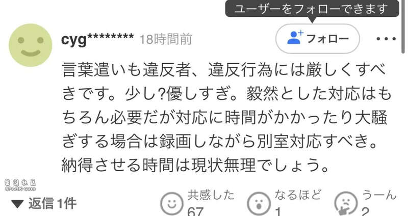 “对违规者、违规行为在用词上也应该更加严格。现在稍微有些过于温和。当然,必须采取坚定的态度,但如果处理耗时过长或者引发骚动,就应该一边录像一边带到单独的房间处理。要让对方心服口服,以目前的状况来说是不可能的。”