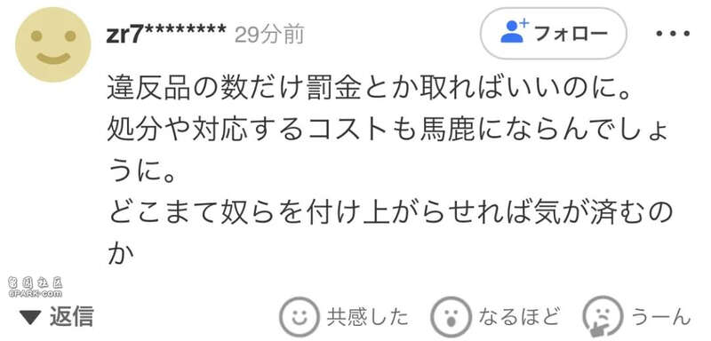 “要按违禁物品的数量来罚款就好了。处理和处置的成本也不是小数目吧。他们还要被放任到什么时候才会罢休?”