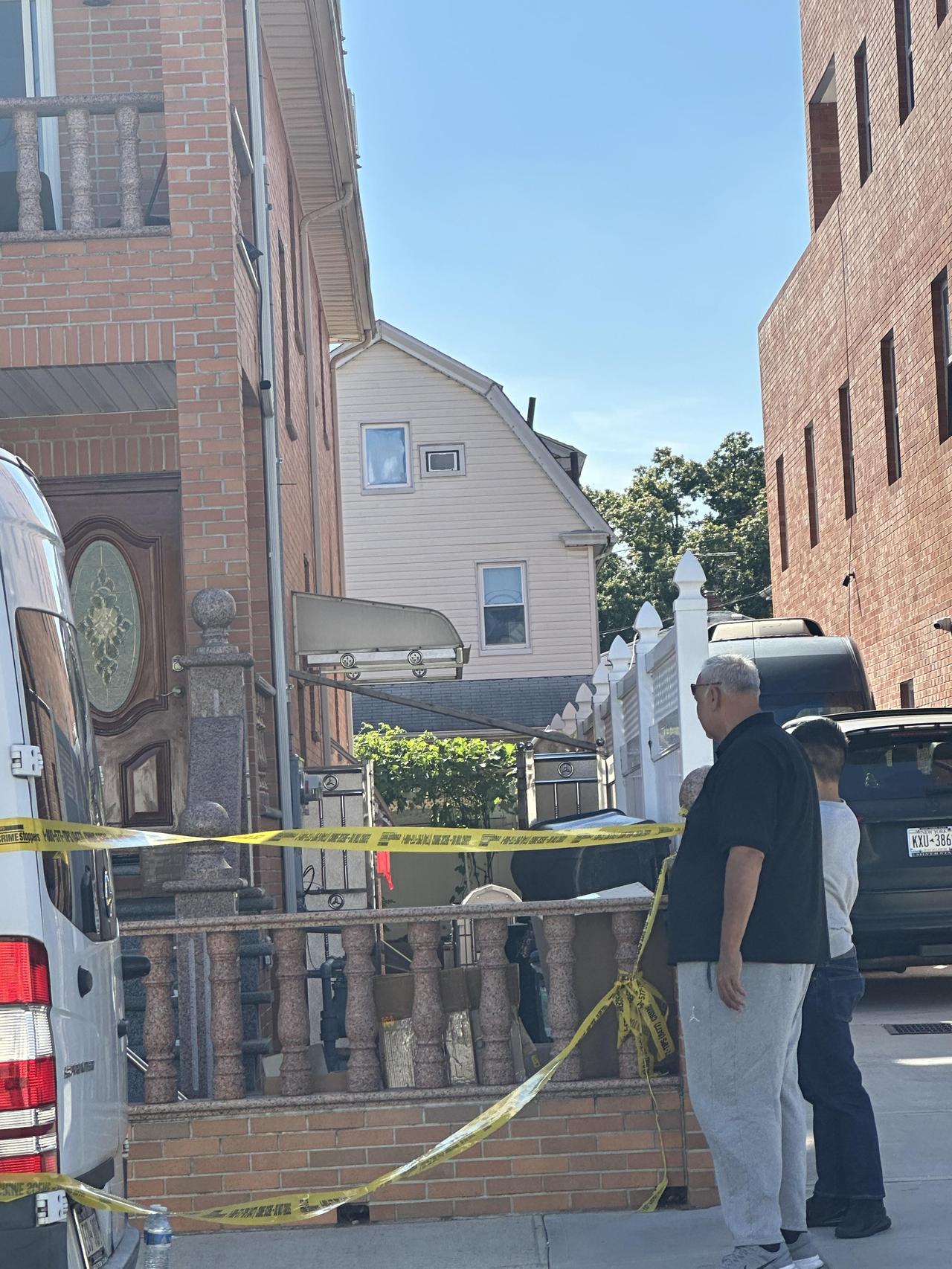住在法拉盛命案案发地下室的一名亲属表示,整栋楼仍被警方封锁,所有住户暂时无法返回。(记者唐典伟/摄影)