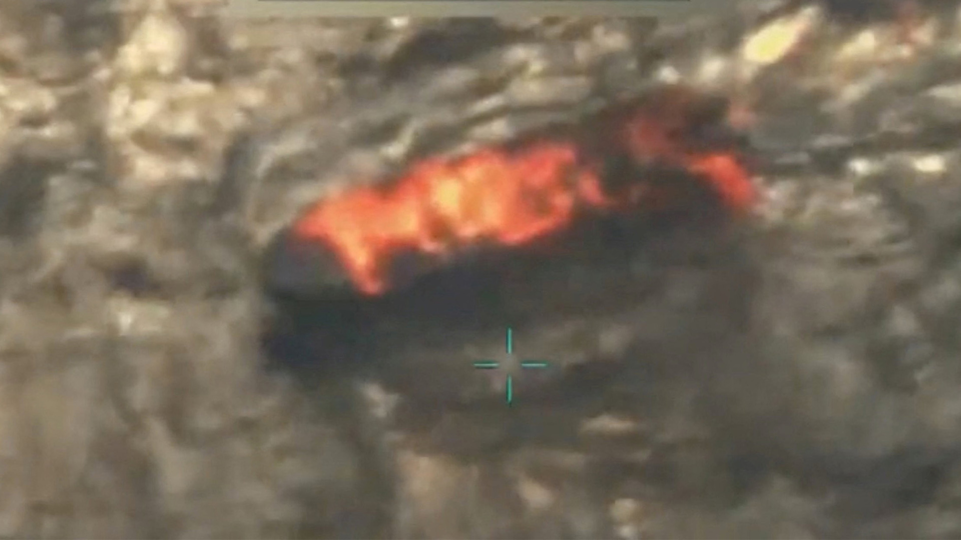 视频显示,一艘狭窄的小船在海浪中疾驰,随后空袭阻止了其前进势头,船只被火焰吞噬。
