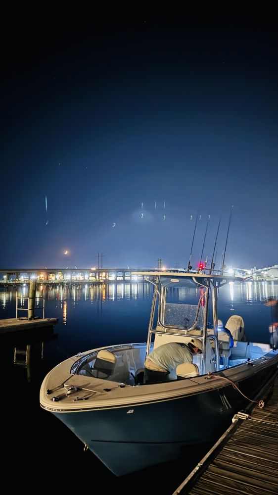 这次船钓牵头的还是阿森。提起阿森,就想起去年与他和阿青三人去墨黑德在海上辛苦一晚上,却一条带鱼也没钓到的悲惨遭遇。今年他倒是去Virginia Beach和Outer Banks几次爆舱而归,每次好几百条大带鱼。由于最近他们又去了墨黑德,铩羽而归,所以,在当天约鱼时酒宴上信誓旦旦的另外几个渔友就没有多大兴致了,因为他们不看好那的渔情。由于在墨黑德新认识的渔导服务没有时间,最后决定拉阿海的船下水,同去的还有阿木和新渔友六哥。