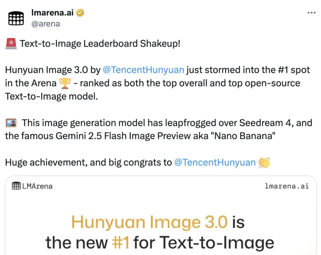 排行榜上的学霸,不一定是日常里的好学生。不少模型分数高得惊人,可一旦真正上手,往往漏洞百出。如今,混元图像 3.0 登顶 LMArena 榜单第一,它究竟是实至名归,还是徒有虚名?别急,我们马上来实测看看。
