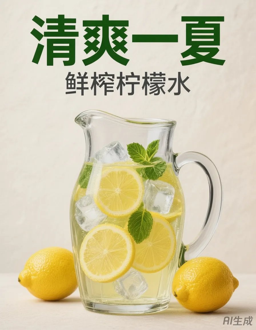 接下来,我们再进行一组海报测试。这次的提示语是:“柠檬水海报”。