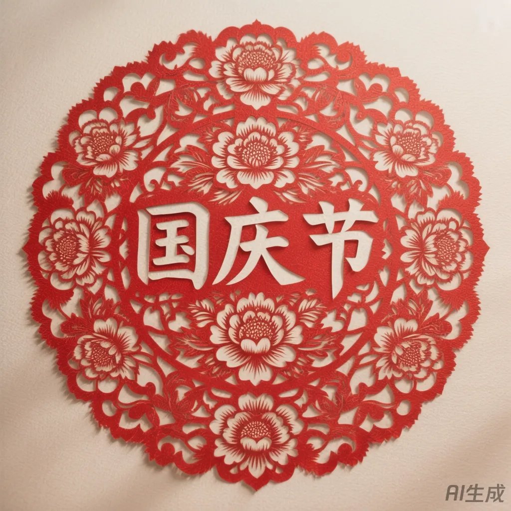 接下来我们决定进一步考验混元图像 3.0 对传统艺术的表现力,这次的提示语是“中国传统剪纸艺术风格,展现细腻精致的民俗非遗纸艺之美。红色剪纸元素镌刻出‘国庆节’字样,构图典雅大方,富有传统韵味。画质高清,突出剪纸细节与层次感,营造节日氛围。”