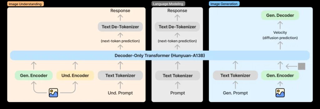 文本分词器(Text Tokenizer):采用混元分词器(Hunyuan Tokenizer),在其词汇表中加入一组专为图像生成与理解任务设计的特殊 tokens,以增强多模态处理能力。