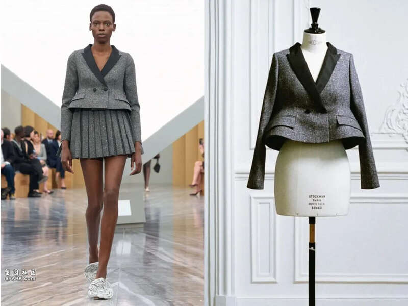 据悉,本季系列突破传统等级之分,将制服与晚礼服同等对待,并以非典型方式与典型女性概念重组,构筑全新优雅姿态。服装结构被最小化,以超乎寻常的方式包裹身体,轻盈感在形态周围流动。裙子的造型起点被上移至肩部,胸衣无需额外结构支撑依然保持完美造型,基本衣物属性被从根本上重新考量。