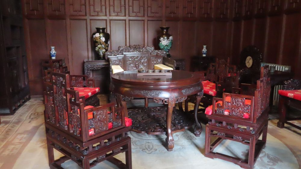 展览再现了同德殿内包括有广间、叩拜间、便见室、中国间、钢琴间、台球间、电影厅、跑马廊、溥仪生活区、李玉琴生活区、长廊等房间和场景。
