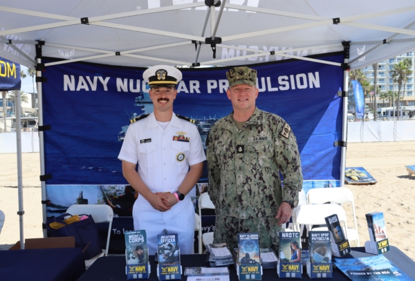 2025年10月3日,第九届太平洋航展(Pacific Airshow)在南加州杭廷顿海滩市举办。图为NXTGN STEM LAB主题区的海军摊位,右为海军招募部门首席顾问爱德华‧T‧加尔(Edward T. Gahl)。(李梅/大纪元) 海军招募部门首席顾问爱德华‧T‧加尔(Edward T. Gahl)介绍,如果有人对海军项目感兴趣,或者想加入海军,他们会提供帮助。海军也有培训和教育项目。在二十多年的军旅生涯中,加尔驻扎过西班牙和苏格兰,还去过意大利和澳大利亚,相当于乘船环游了世界。◇