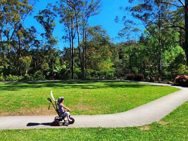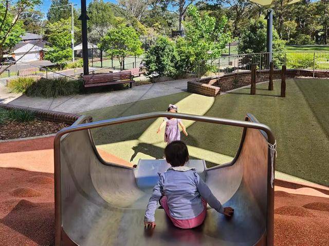 今天,我带着两个可爱的孙女去了悉尼的Boyds Orchard Park博伊德果园公园。一进公园,就能看到各种各样的儿童游乐设施,还有一个围起来的半个篮球场,以及一条水泥跑道,孩子们可以在上面尽情地滑板、骑车。两个小家伙玩得那叫一个开心,笑声在公园里回荡。