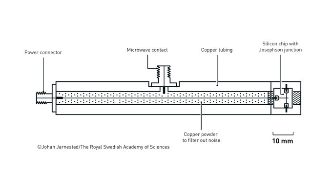 三位科学家构建了一个使用超导电路的实验装置。承载该电路的芯片尺寸约为一厘米。此前,隧穿效应和能量量子化主要在仅含少数粒子的系统中被研究;而在此实验中,这些量子现象出现在一个包含数十亿个库珀对的宏观量子系统中,这些库珀对遍布整个芯片上的超导体。因此,这项实验将量子效应从微观尺度推进到了宏观尺度。