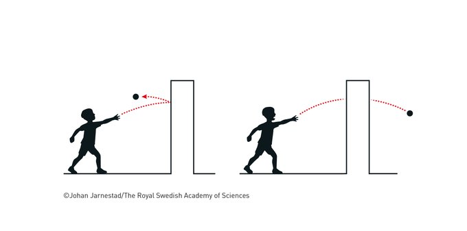 理论物理学家安东尼·莱格特曾将获奖者的宏观量子系统,与著名的“薛定谔的猫”思想实验相比较。在该思想实验中,如果不去观察,猫就同时处于“活着”和“死亡”的叠加态(薛定谔因此获得1933年诺贝尔物理学奖)。这个思想实验的初衷是揭示这种状态的荒谬性,因为在宏观尺度上,量子力学的特殊性质通常会被抹去。人们无法在实验室中真正展示一只猫的量子叠加态。