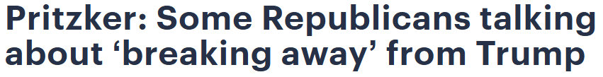 伊利诺伊州州长J·B·普利兹克周一表示,他认为一些共和党人开始讨论与总统川普“划清界限”。