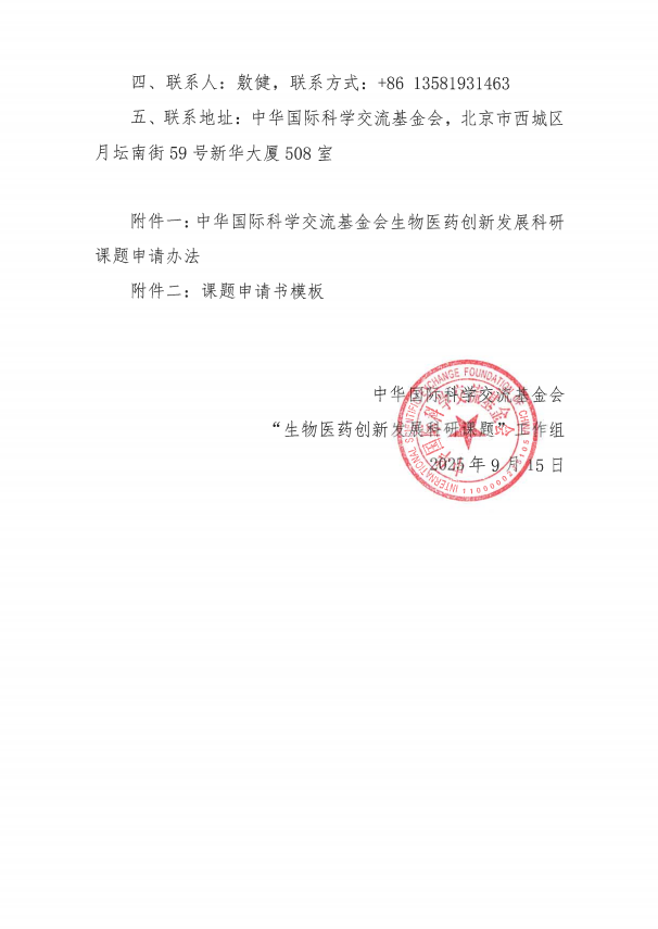 关于征集2025年中华国际科学交流基金会生物医药创新发展科研课题的通知