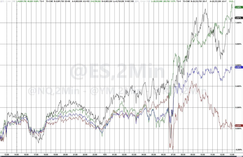 美股早盘,美股三大指数集体高开,英伟达领涨科技股,带动费城半导体指数涨超1%,AMD一度涨超6%。华尔街见闻提及,戴尔科技因大幅上调业绩指引,投行集体唱多,盘中涨幅一度达10%。