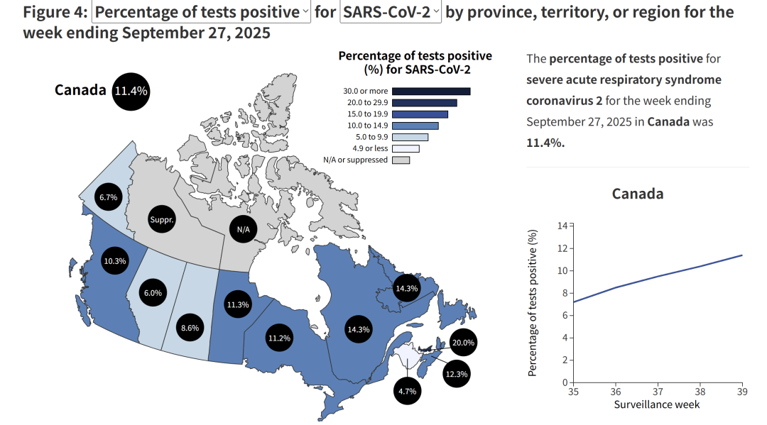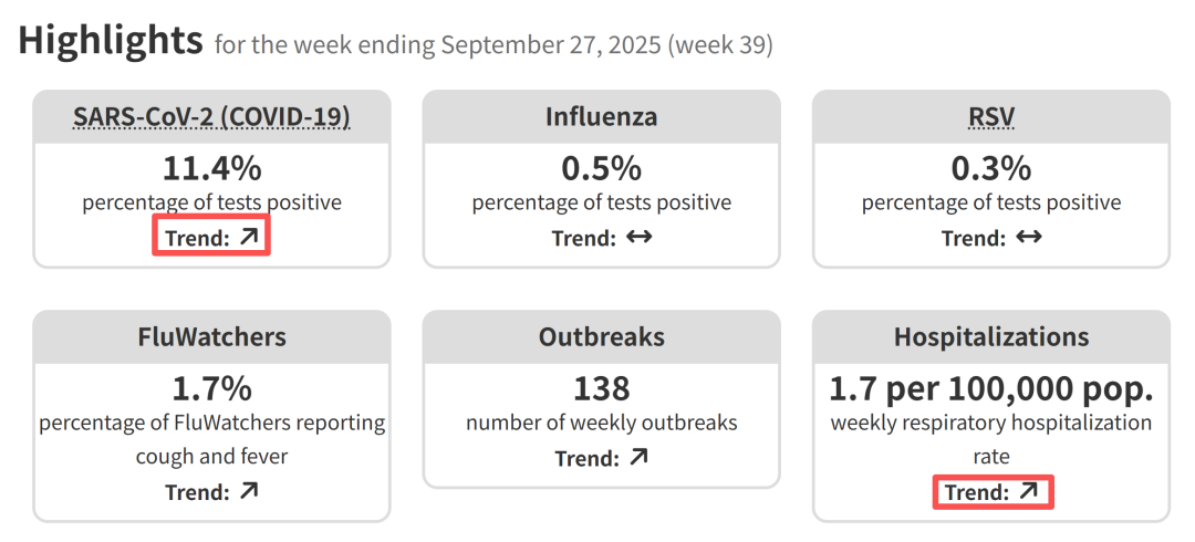 根狙汤生局公布的最新一周《全国呼吸道病毒监测报告》,目前加拿大新冠病毒检测阳性率已上升至11.4%,当周共检测到2.799例阳性样本,远高于同期的流感与RSV水平!