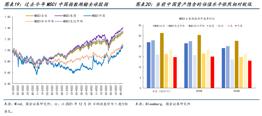 路径一:如果美元的反弹是出于避险需求的上升,投资者或将更加倾向于持有美元现金,此前受益于美元充裕流动性的非美市场反而可能出现资金外流。对于A股市场而言,我们更加倾向于认为在此情形下所受到的冲击相对有限:一方面,过去几年在美股为代表的海外资产长期牛市之下,海外资产更为受到资金的青睐,而以MSCI为代表的中国资产反而涨幅较为落后;另一方面,即便是经历2024年“924”以来的股价上涨,但相较于海外资产而言(如美股的市盈率远高于全球及发达市场整体估值水平),中国资产的市盈率依然处于相对低位。