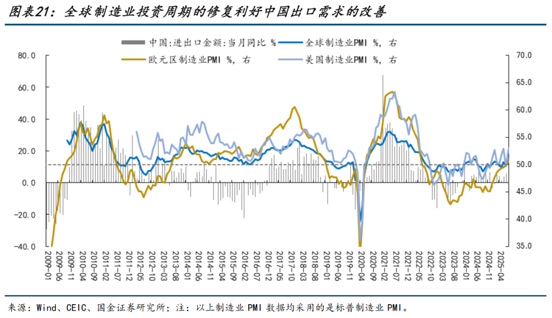 路径二:美国制造业与全球制造业周期修复所带来的出口预期强化,结合中国反内卷,带动A股盈利周期修复。未来可能出现的演绎路径是:全球制造业复苏→出口订单回暖→需求修复且国内“反内卷”继续执行→价格企稳并带动企业盈利修复。对于中国资产(A股与港股)而言,脆弱点在美元走弱下与全球资产发生高度共振的板块。两种不同场景,低位的中国顺周期资产具有最好的估值保护与潜在收益可能,受益于全球制造业周期修复的产业链条有边际上最大变化。