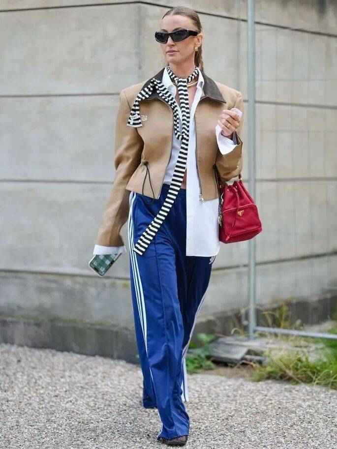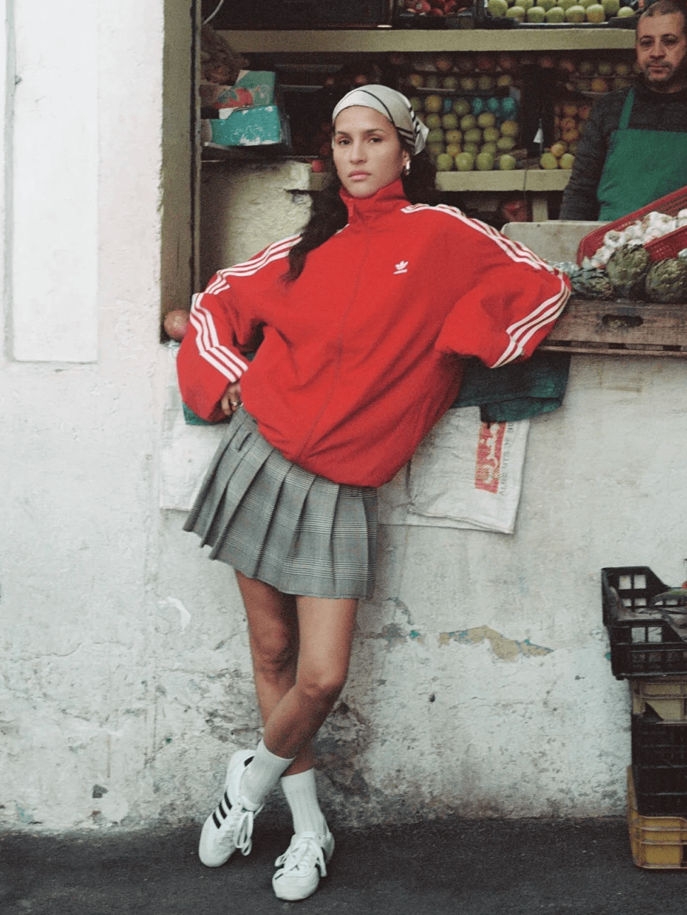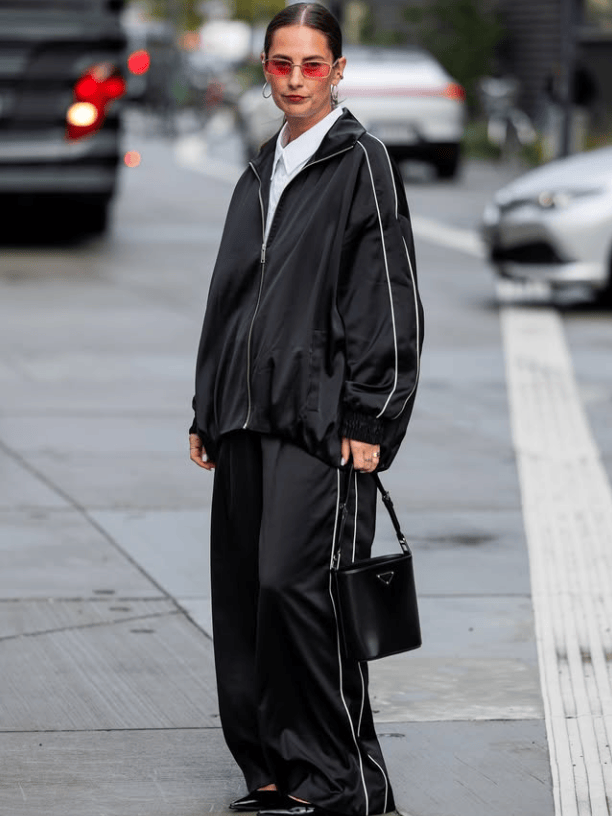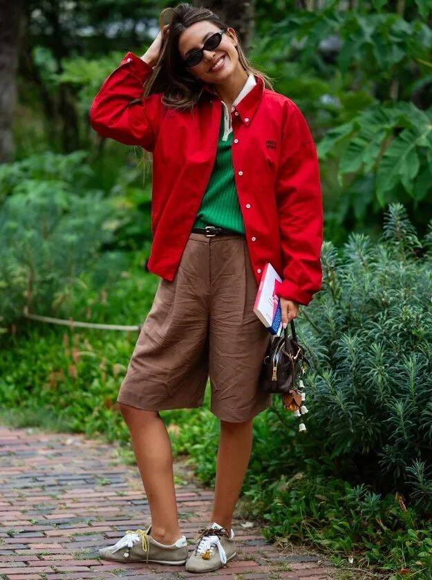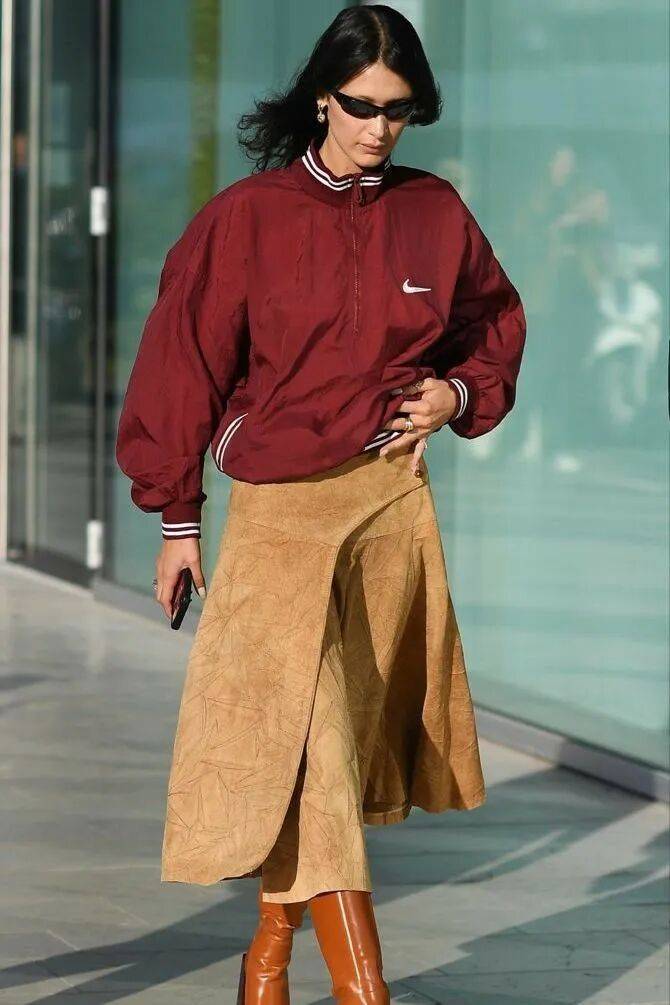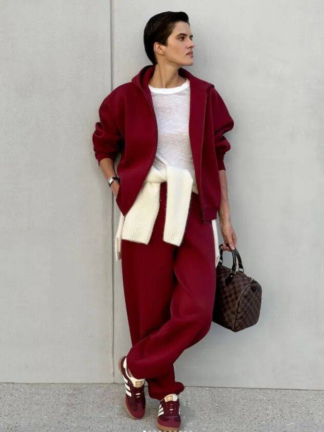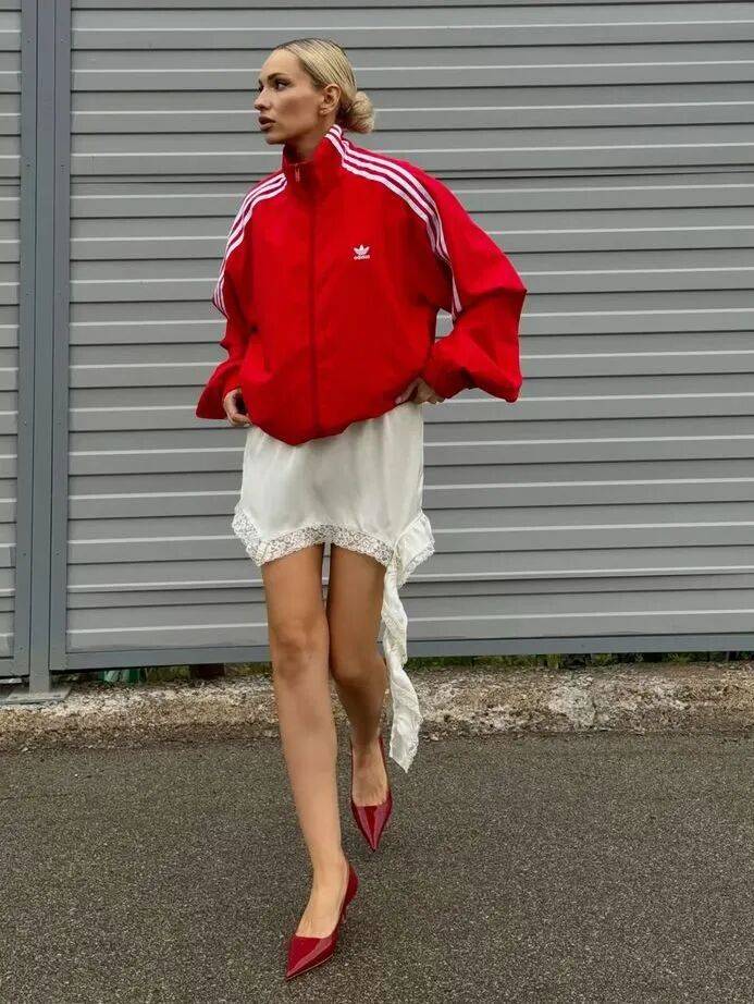 今年复古红运动服当红不让,Oversize的版型反倒更显随性松弛,不仅吸睛还很契合秋冬的氛围,无论是搭配复古百褶小短裙,还是薄纱、缎面半裙,甚至是运动裤装,都能搭出浓浓的复古气质。