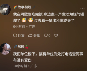据当地一些网友在视频区留言显示,这家店平时晚上人特别多。事发时,一位网友在隔壁刚吃完饭,就听到“轰”地一声,还以为煤气罐爆了,过去看,结果发现“一辆出租车逆天了”。 一位目击现场的网友表示,吓坏了,据其透露,出租车司机是个大姐。