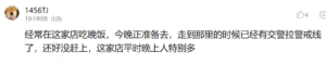 事发后,有网友去这家店吃饭时,看到现场已经有交警拉警戒线了。