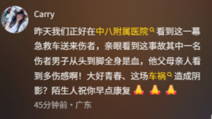 一位在中八附属医院的网友并表示,看到有急救车送来伤者,其中一名受伤的年轻“男子从头到脚全身是血”。