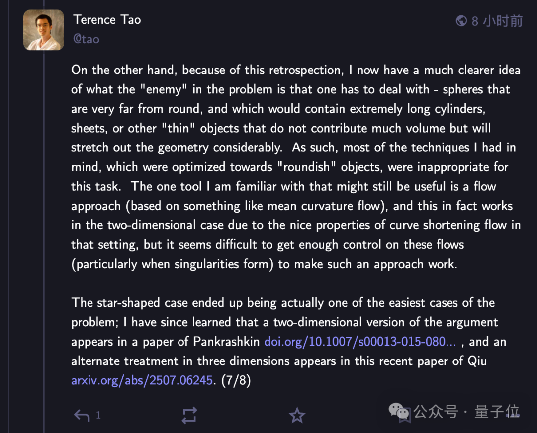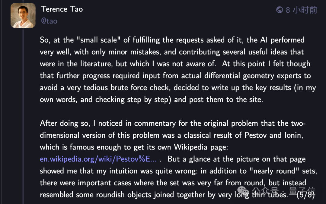 虽然解题告一段落,但陶哲轩的思考还在继续。