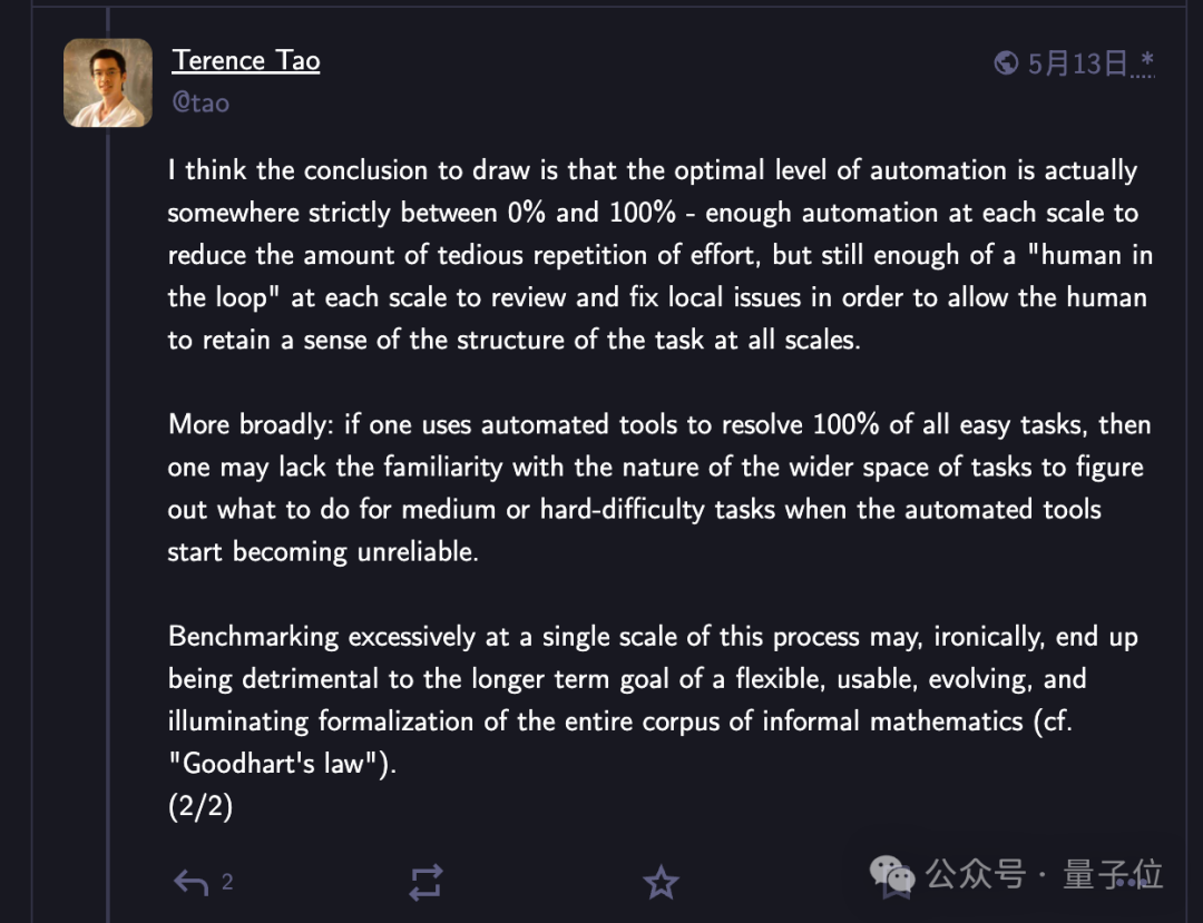 正如他一直所说的那样,AI正在重塑人类科学范式,其最合理的角色是成为数学家的“副驾驶”或助理,而不是取代人类在创造性、直觉性、策略性上的工作。